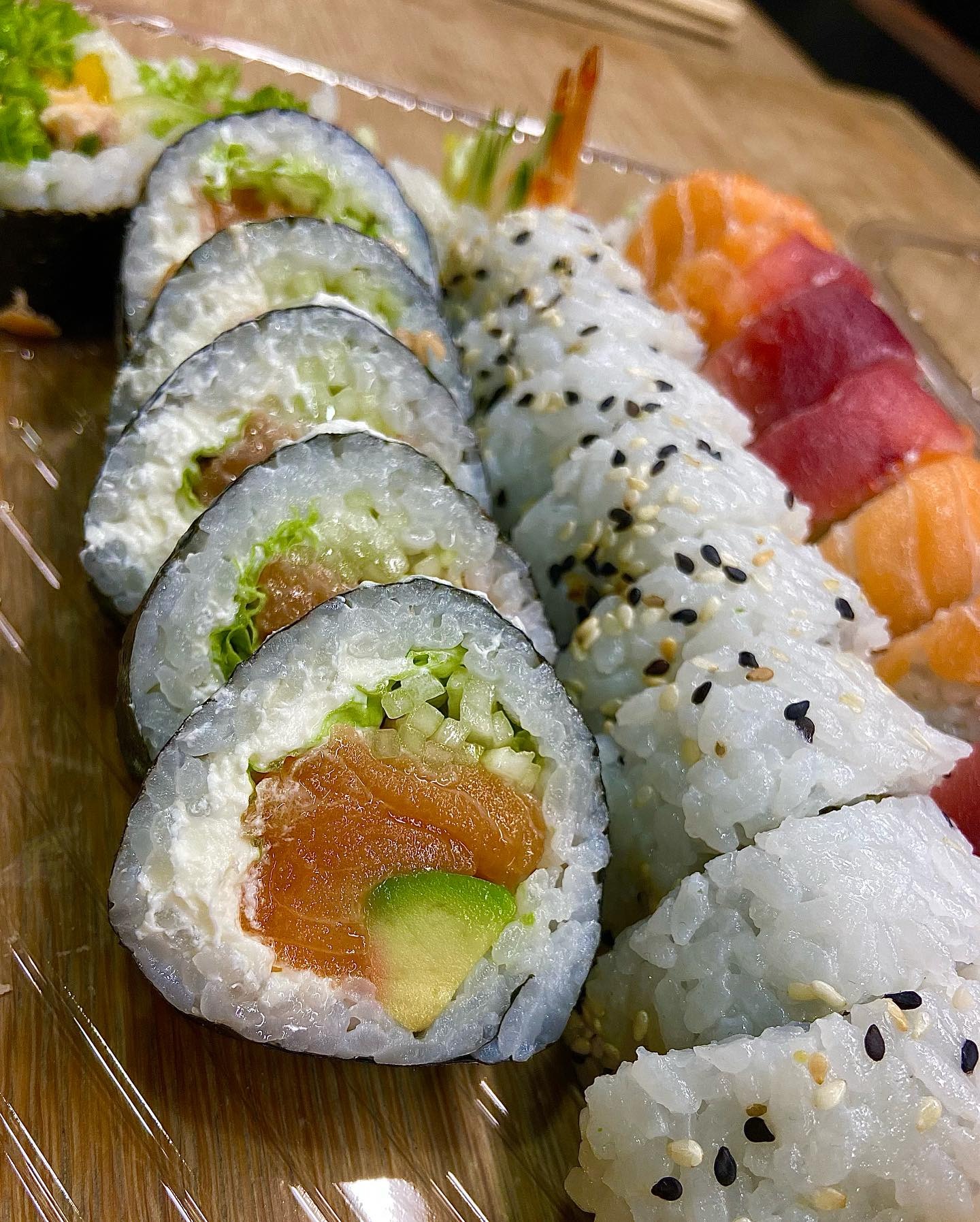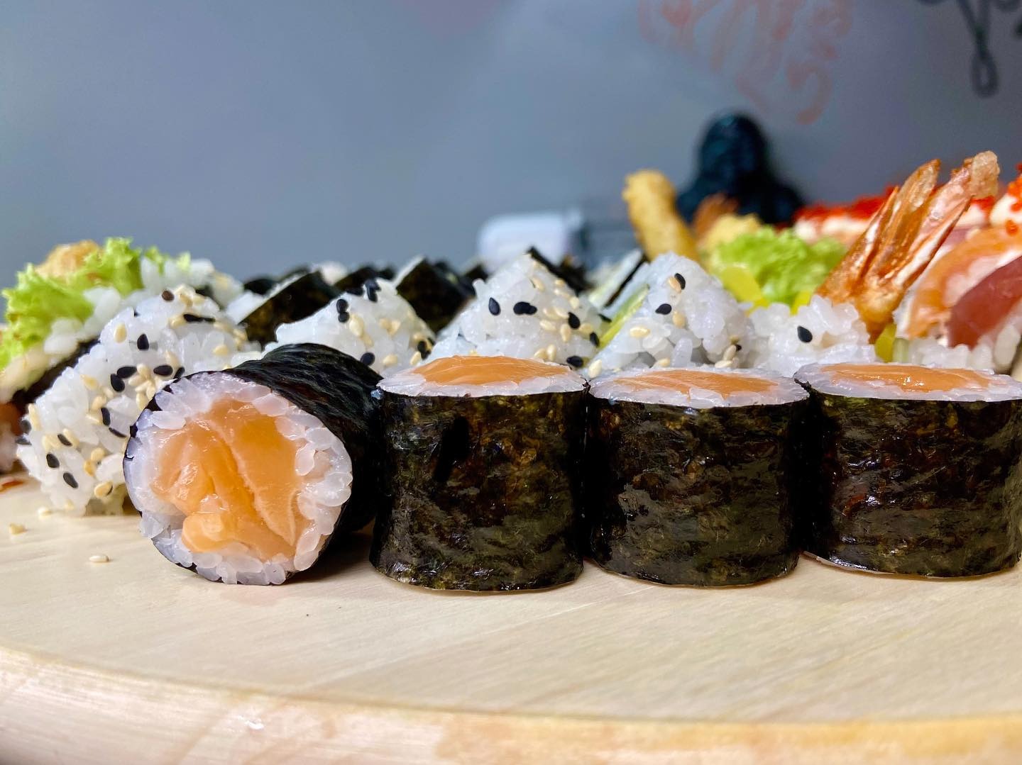Futomaki Łosoś Surowy 6 szt. Futomaki Dorada Tempura 6 szt. Uramaki Krewetka Tempura 10 szt. Uramaki Vege 10 szt. Hosomaki Oshinko Panko Tempura 8 szt. Dostępny od poniedziałku do czwartku.